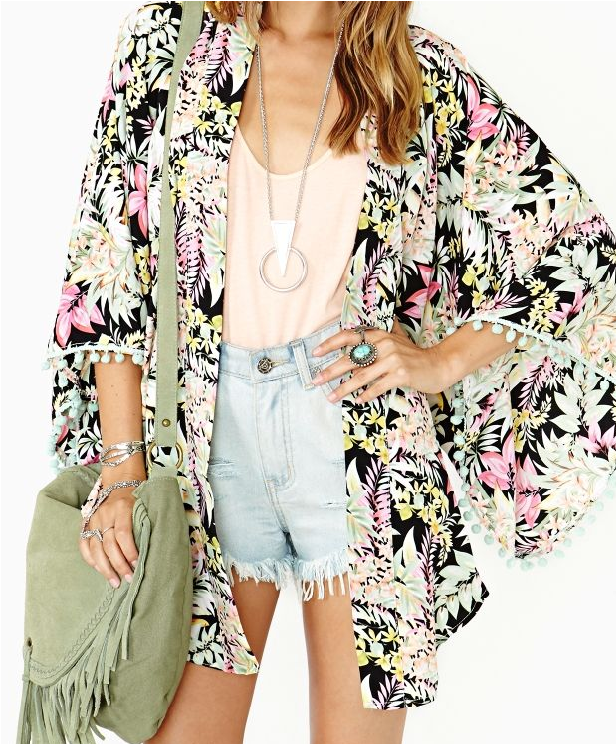 El outfit para hoy va dirigido a los quimonos!! Esta palabra en japonés significa realmente "algo para vestir" así que tienen mucha razón, es una pieza fantástica para esta primavera-verano. Mis favoritos son los quimonos con flecos muy coloridos que pasan la cadera y llegan al muslo. Podéis encontrar muchos tipos y tamaños y podéis combinarlos con pantalones, vestidos o shorts. Los quimonos favorecen a todas!! Aquí os dejo alguno de mis favoritos.